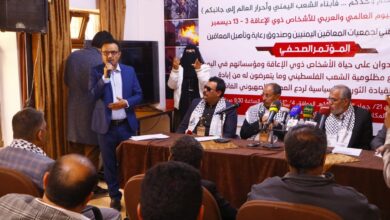 مؤتمر صحفي للاتحاد الوطني لجمعيات المعاقين وصندوق رعاية وتأهيل المعاقين لكشف جرائم العدوان بحق الأشخاص ذوي الإعاقة في اليمن