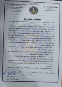 كشفت وثيقة سرية مسربة تداولها ناشطون على مواقع التواصل الاجتماعي عن نتائج اجتماع سري عقدته الأمانة العامة للمجلس الانتقالي الجنوبي الأربعاء الماضي بحضور عدد من قيادات المجلس في العاصمة المؤقته عدن جنوبي اليمن.