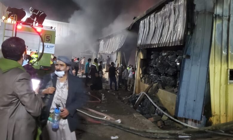 شاهد … مصدر مسؤول في صنعاء يكشف تفاصيل جديده عن حجم الأضرار والخسائر التي تعرض لها مصنع العاقل للمواد الغذائية نتيجة حريق هائل إلتهم المصنع مساء اليوم ( صور )